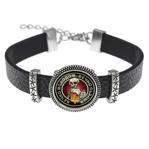 Кожаный браслет Вечно молодой, вечно пьяный BSK2-0158
