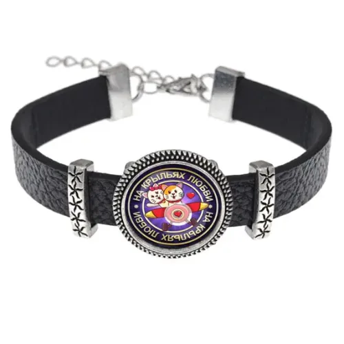 Кожаный браслет На крыльях любви — это стильный аксессуар, который станет прекрасным дополнением к любому образу. Этот уникальный браслет украшен изображением диаметром 18 мм под выпуклой стеклянной линзой, что придаёт ему особую выразительность. Регулируемый размер позволяет носить его на любой руке, обеспечивая комфорт и удобство в использовании.