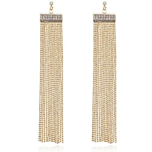 Серьги-шторки со стразами, цвет золотой UD121-g