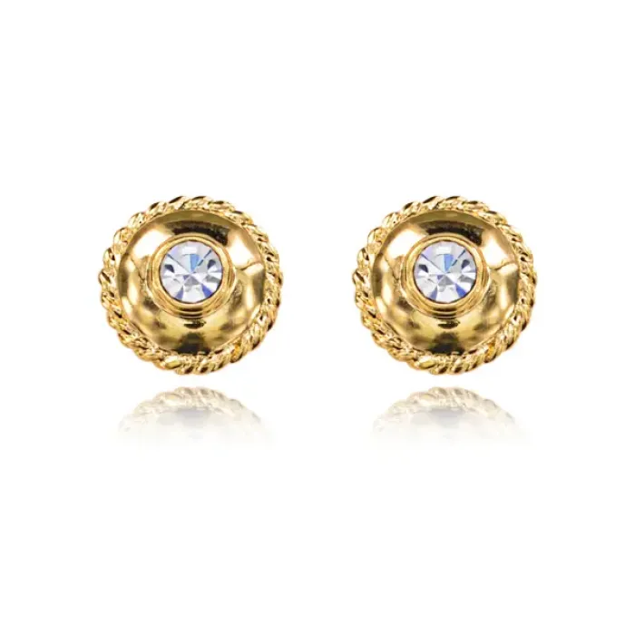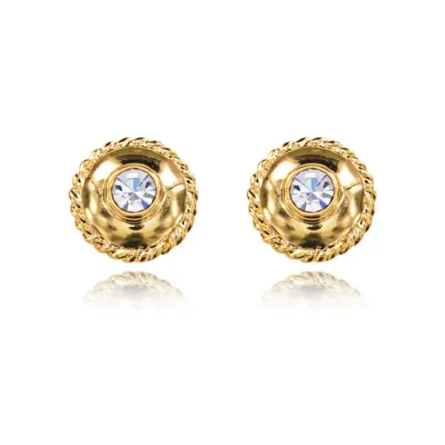 Серьги-гвоздики из бижутерного сплава золотого цвета, украшенные стразами.