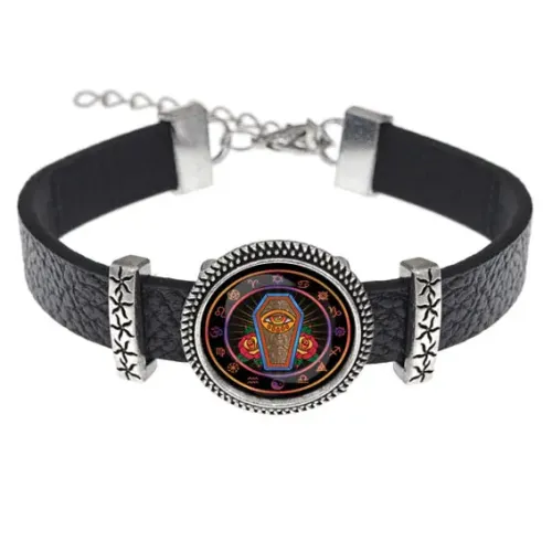 Кожаный браслет Глаз, гроб, розы BSK2-0190
