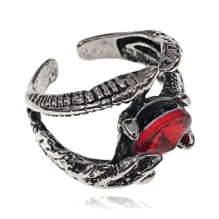 Безразмерное кольцо с изображением дракона. Изготовлено из бижутерного сплава с покрытием под серебро и вставкой из страза.