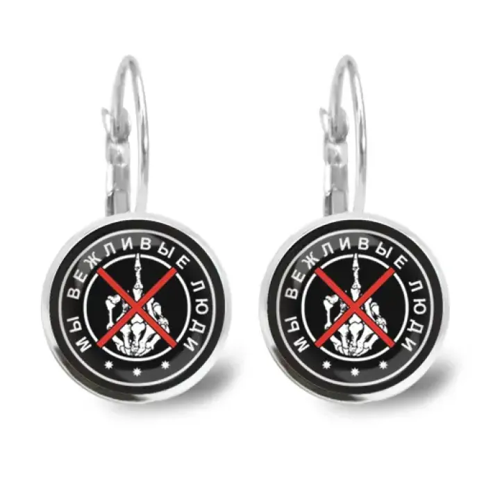 Серьги из бижутерного сплава с выпуклыми стеклянными линзами и замком типа левербэк.
