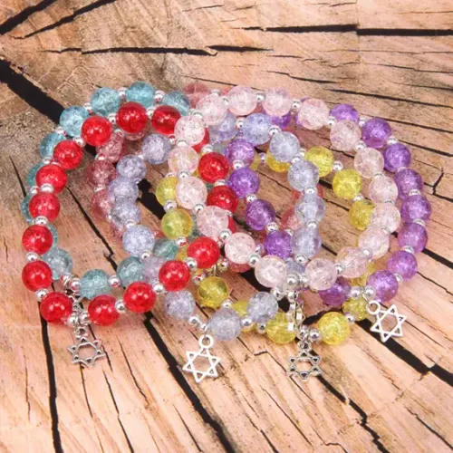 Браслет Сахарный кварц 8мм со Звездой Давида, цвет в ассорт. BJBS-166-MIX