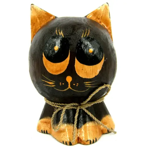 Интерьерная статуэтка в виде кошки, изготовленная из дерева албезия методом ручной работы.