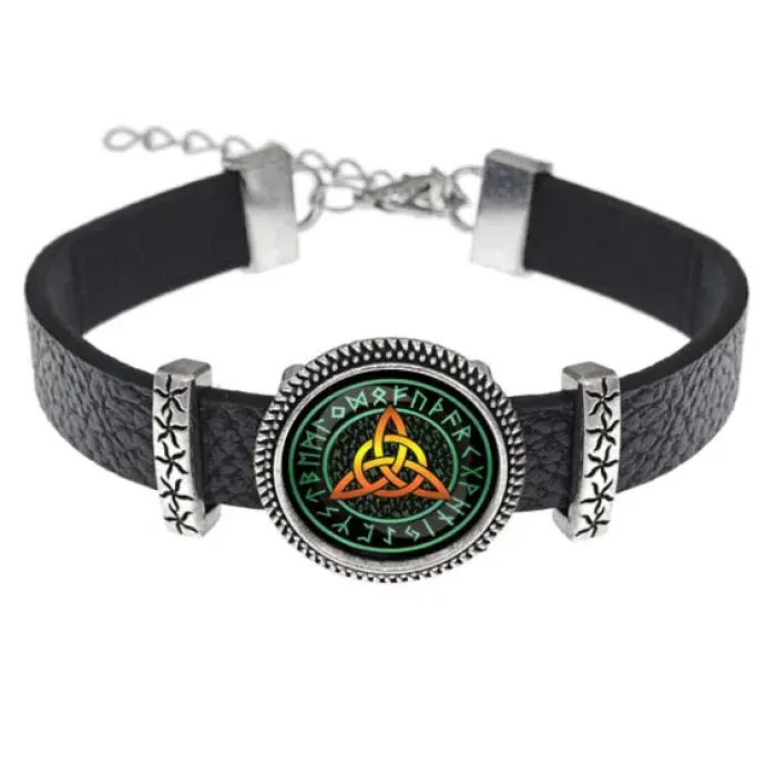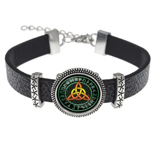 Кожаный браслет с символом Трикветра.