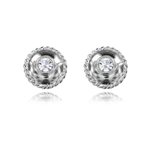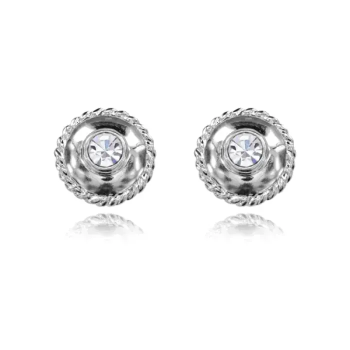 Серьги-пусеты из бижутерного сплава со стразами серебряного цвета.