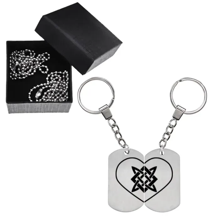Размеры и комплектация: Размер каждого жетона 50х28 мм. В комплекте кольцо для ключей, шариковая цепочка с регулировкой длины и подарочная коробка.