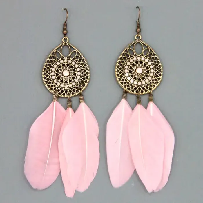 Серьги-сувенир в стиле «Ловец снов» из цветных перьев.