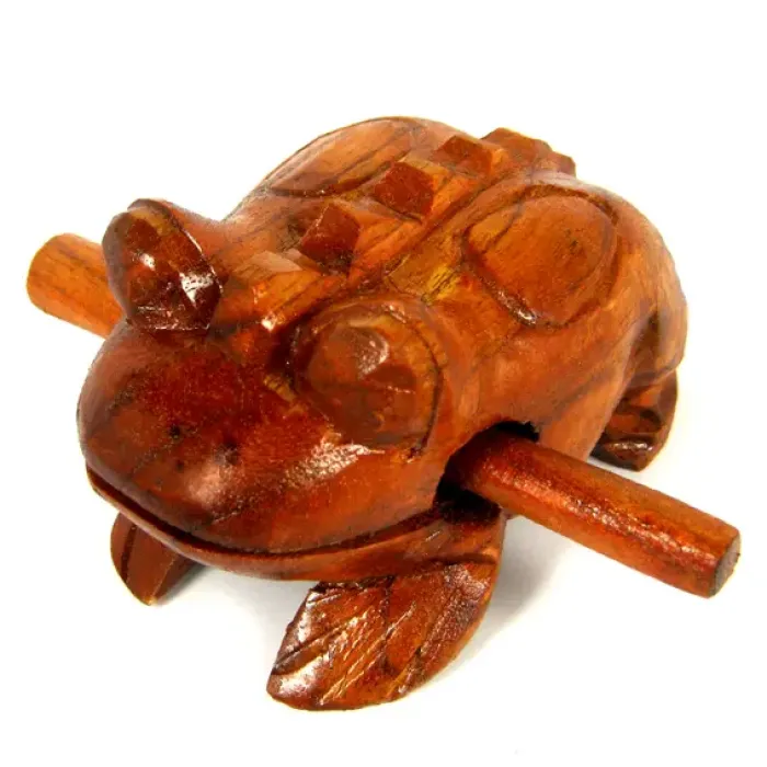 Фигурка жабы из дерева с функцией извлечения звука при проведении палочкой по спине.