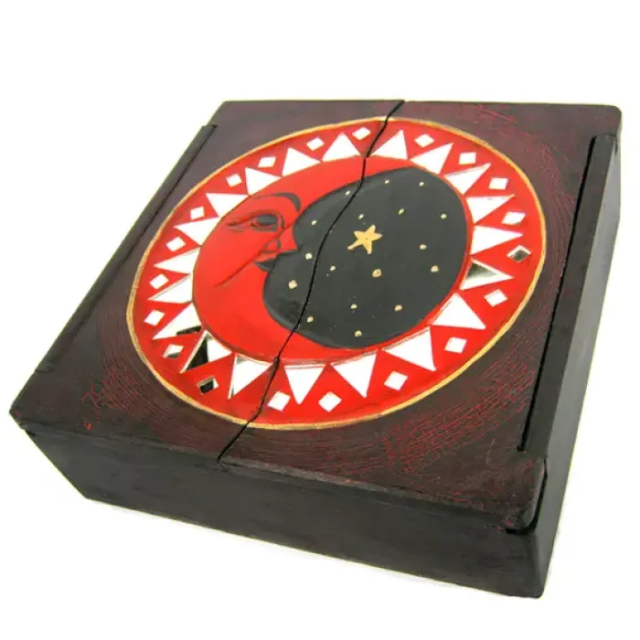 Эта изысканная двустворчатая шкатулка День-Ночь — идеальное решение для хранения мелочей и стильный подарок, который подчеркнет индивидуальность любого интерьера. Изготовленная вручную в Индонезии, она сочетает в себе высокое качество и уникальный дизайн, что делает каждую шкатулку неповторимой.