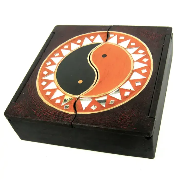 Двустворчатая деревянная шкатулка для хранения мелочей с дизайном «Инь-Ян».