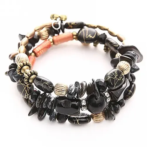 Браслет тройной, смешанные материалы, черный BS324-1