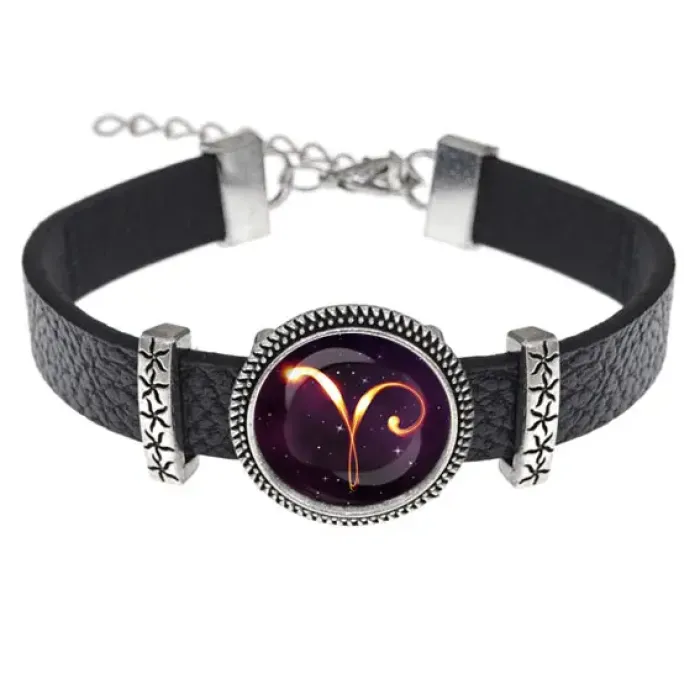 Кожаный браслет с изображением знака зодиака Овна станет отличным аксессуаром для тех, кто ценит астрологию и индивидуальность. Этот стильный браслет диаметром 18 мм под выпуклой стеклянной линзой добавляет изюминку любому образу.
