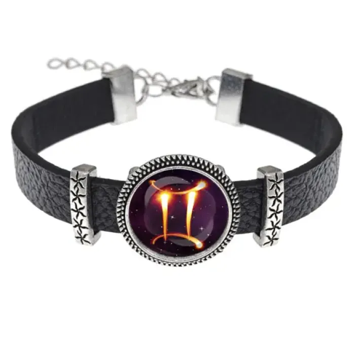 Кожаный браслет с изображением знака зодиака Близнецы — это стильный аксессуар, который подчеркивает индивидуальность и символизирует двойственность этого знака. Изготовленный из качественной кожи, металла и стекла, он станет отличным дополнением к любому образу.