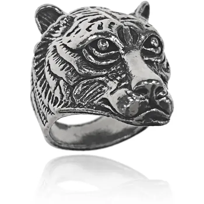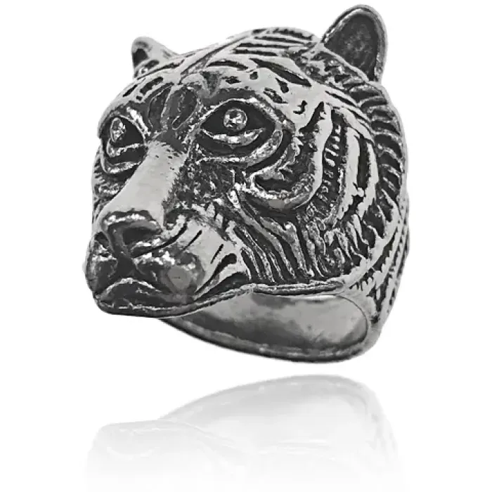 Кольцо с дизайном в виде тигра. Изготовлено из бижутерного сплава с покрытием под серебро.