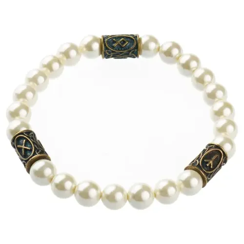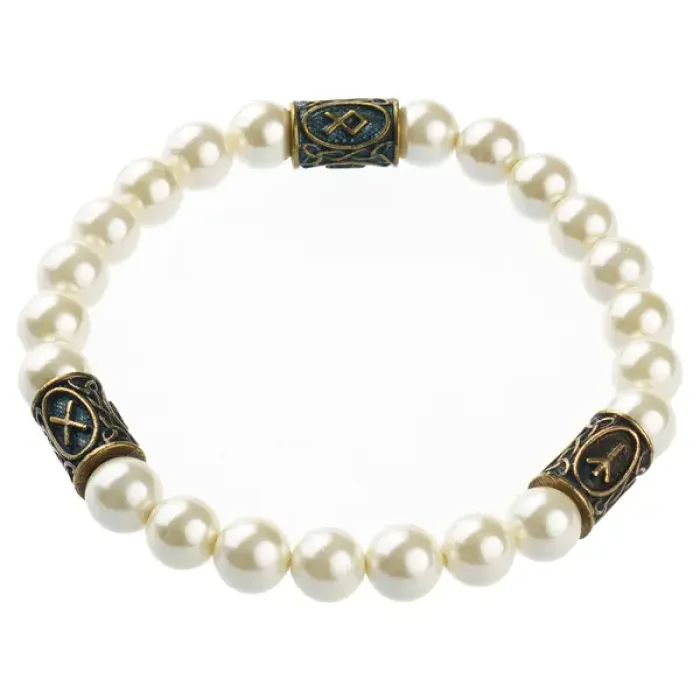 Рунический браслет-сувенир из искусственного жемчуга майорка и латуни.
