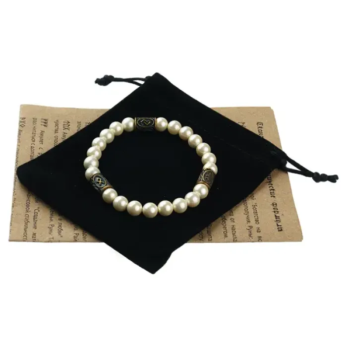 Рунический браслет Преумножение собственности — это стильный стрейч-браслет из высококачественного искусственного жемчуга майорки с уникальной рунической формулой. Основные характеристики включают: