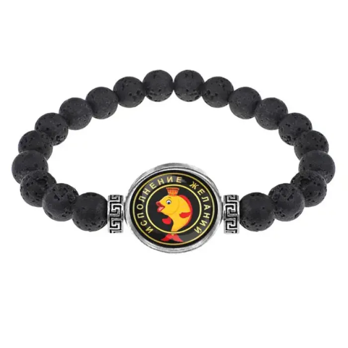 Браслет из лавы 8 мм Исполнение желаний (золотая рыбка) BSL-0001