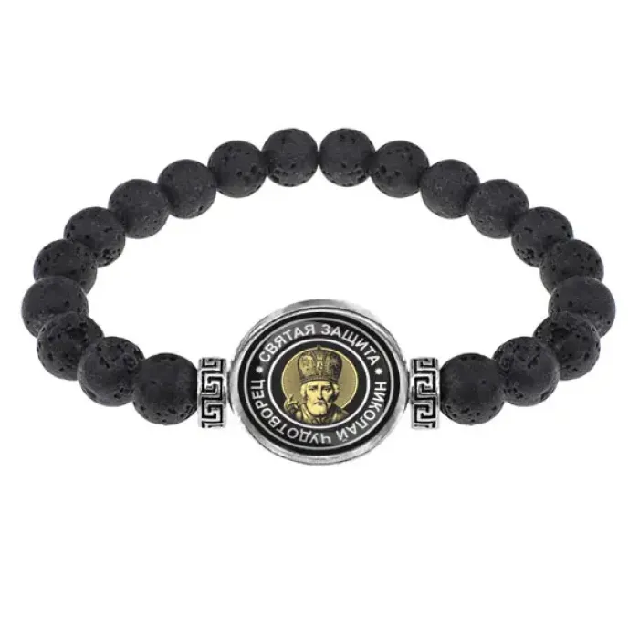Браслет из лавы 8 мм Николай Чудотворец BSL-0045