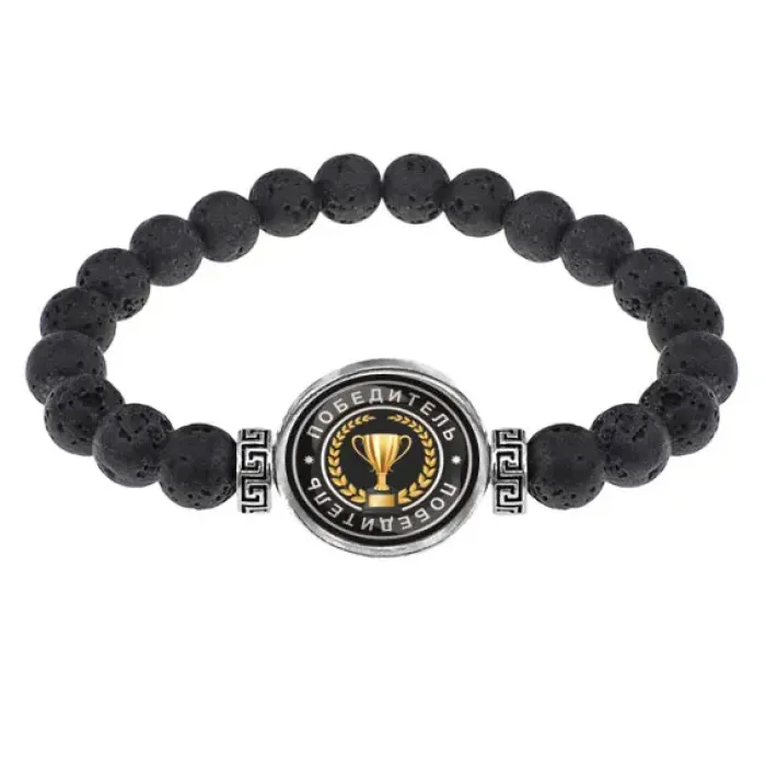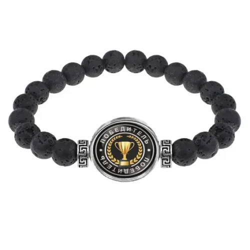 Стрейч-браслет из натуральной лавы диаметром 8 мм — это не просто украшение, а символ силы и мужественности. Лава традиционно ценится за свою способность привносить интуицию, мудрость и помогать в достижении целей. Браслет дополнен изображением под выпуклой стеклянной линзой диаметром 20 мм, что придаёт ему уникальный стиль. Внутренний диаметр составляет около 5,5 см, что делает его удобным для ношения. Изготовлен из высококачественных материалов: лавы, бижутерного сплава с покрытием под серебро и стекла. Упакован в прозрачный пакет для удобства хранения.