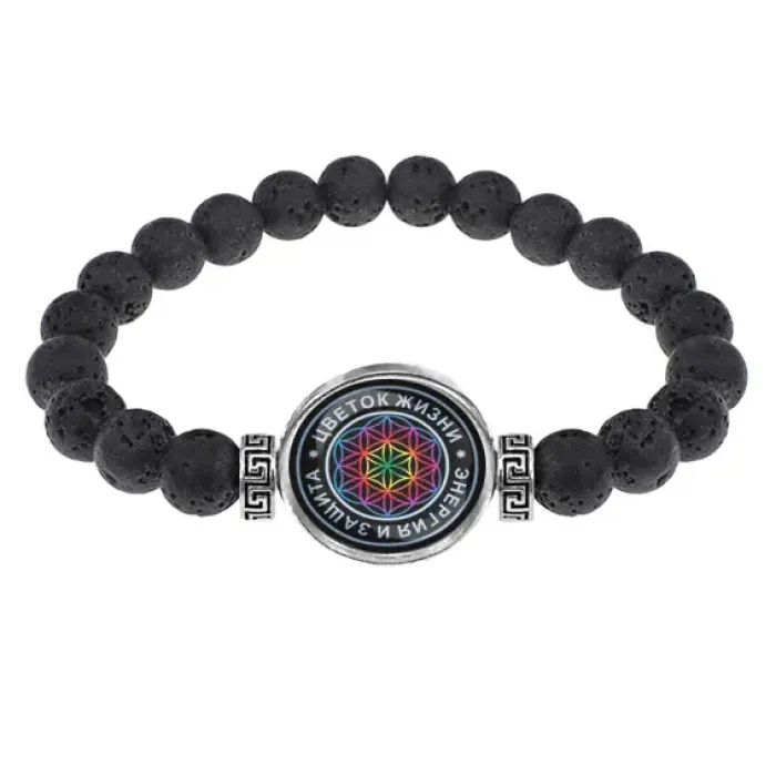 Браслет из лавы 8мм Цветок жизни BSL-0060