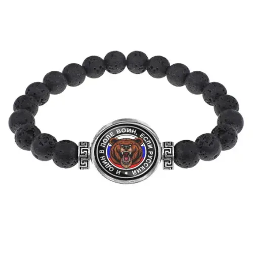 Браслет из лавы 8 мм И один в поле воин BSL-0070