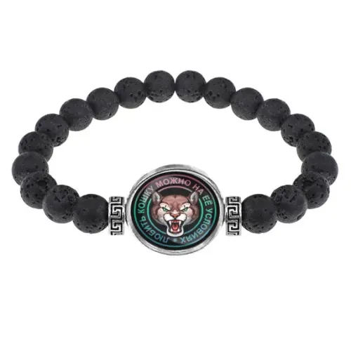 Стрейч-браслет из натуральной лавы диаметром 8 мм с изображением под выпуклой стеклянной линзой.