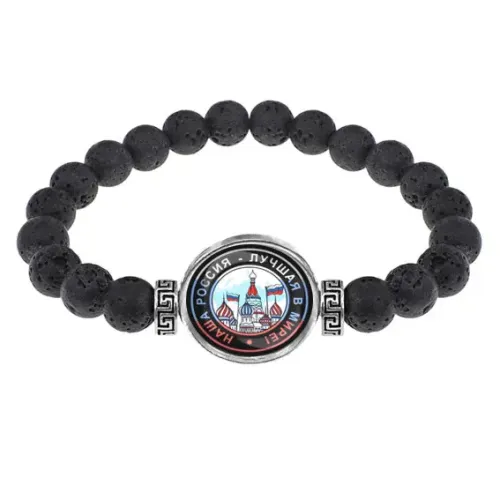 Браслет из лавы 8 мм Наша Россия - лучшая в мире BSL-0089