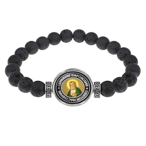 Браслет из лавы 8 мм Святой преподобный Серафим Саровский BSL-0094