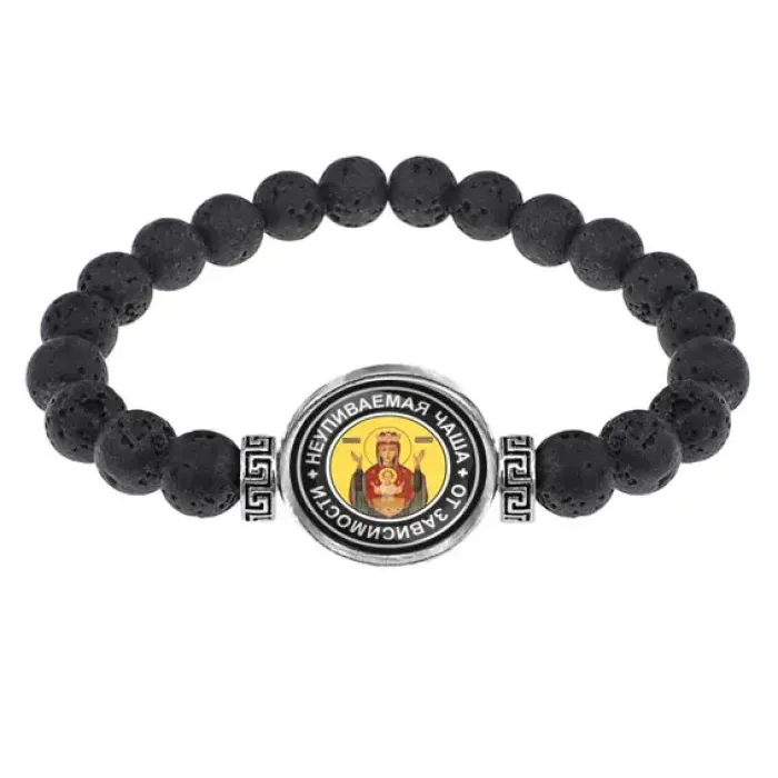Браслет из лавы 8 мм Пресвятая Богородица (Неупиваемая Чаша) BSL-0097