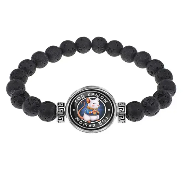 Браслет из лавы 8мм Восточный гороскоп - год Крысы BSL-0099
