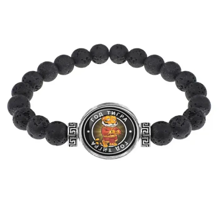 Браслет из лавы 8 мм Восточный гороскоп - год Тигра BSL-0101