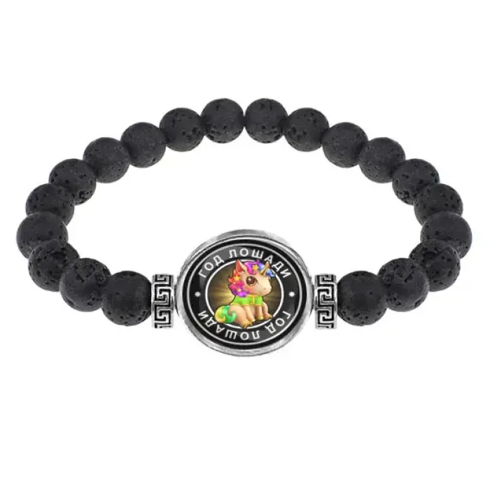 Браслет из лавы 8мм Восточный гороскоп - год Лошади BSL-0105