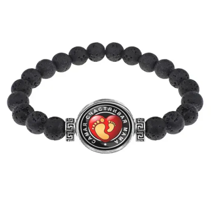 Браслет из лавы 8мм Самая счастливая мама BSL-0111