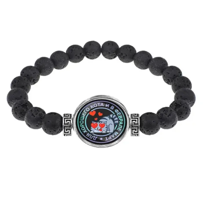Браслет из лавы 8 мм Для хорошего кота BSL-0124