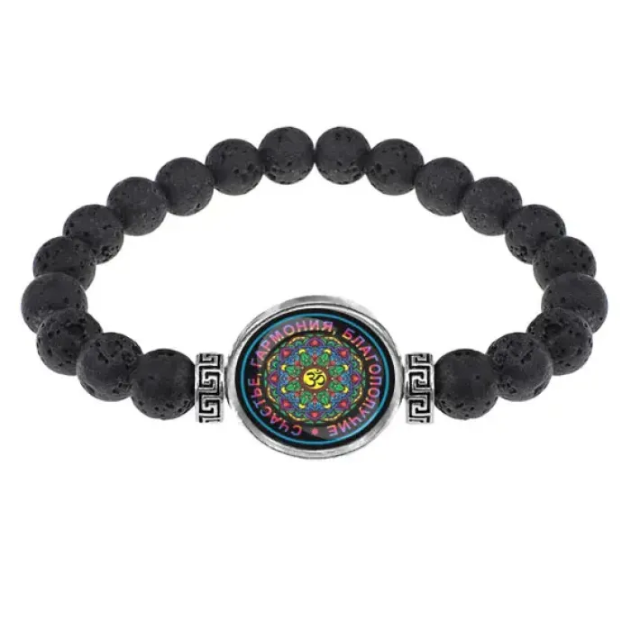 Браслет из лавы 8 мм Мандала Ом BSL-0141