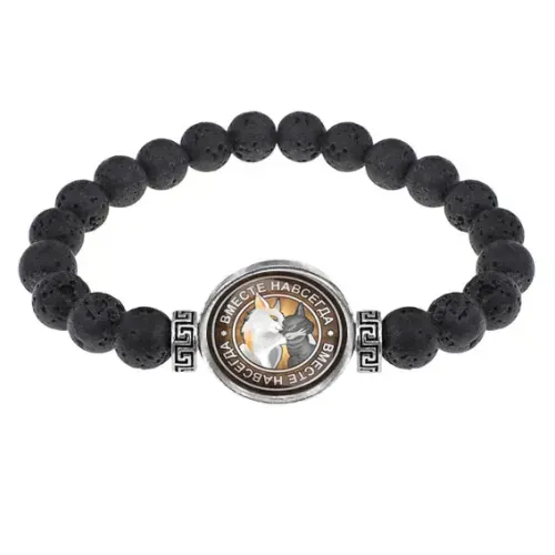 Стрейч-браслет из натуральной лавы диаметром 8 мм с изображением под выпуклой стеклянной линзой. Этот аксессуар не только красив, но и символизирует силу, мужество и мудрость. Лава традиционно ценится за свои защитные свойства, помогая справляться с негативной энергией и плохим настроением.