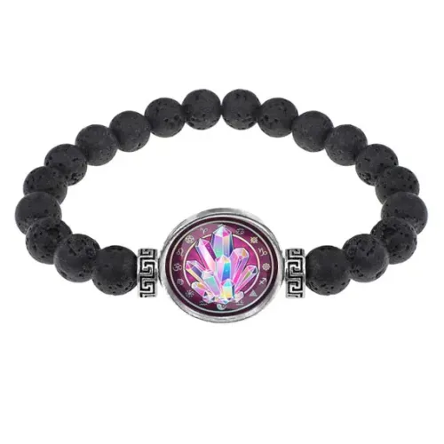Стрейч-браслет из натуральной лавы диаметром 8 мм с декоративным элементом под стеклянной линзой.