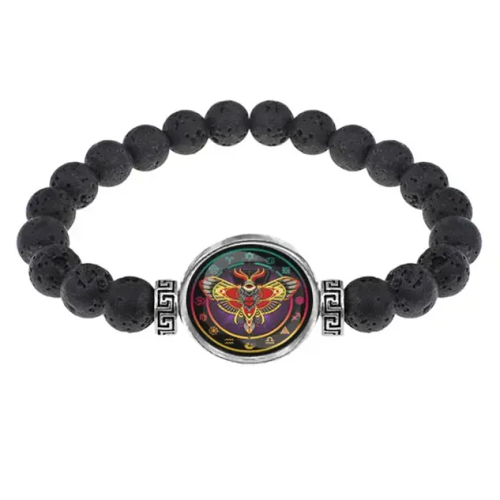 Браслет из лавы 8мм Мотылек Мертвая голова BSL-0183