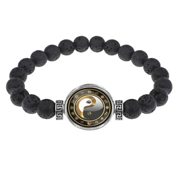 Браслет из лавы 8 мм Инь-Ян BSL-0186