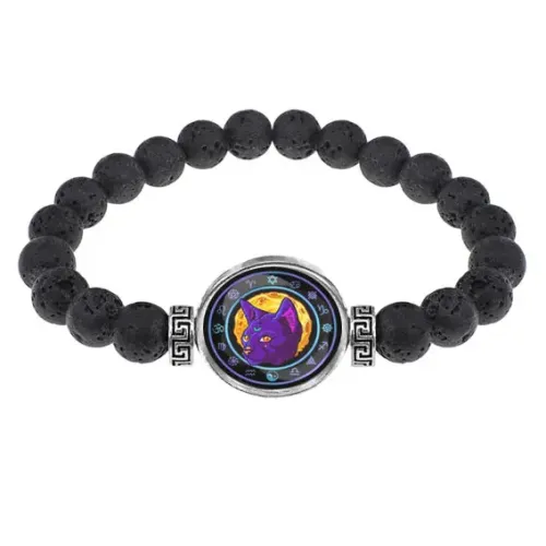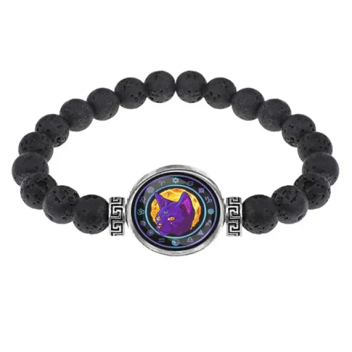 Браслет из лавы 8 мм Лунный кот BSL-0191