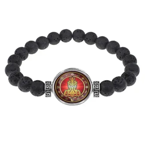 Стрейч-браслет из натуральной лавы диаметром 8 мм с изображением под выпуклой стеклянной линзой. Этот аксессуар не только стильный, но и наполнен символикой силы и мудрости. Лава традиционно ценится за свои защитные свойства, помогая справляться с негативной энергией и поддерживать внутренний баланс.