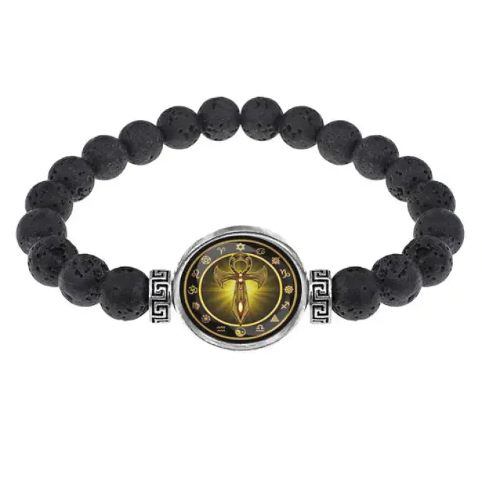 Браслет из лавы 8 мм Клинок Анкх BSL-0206
