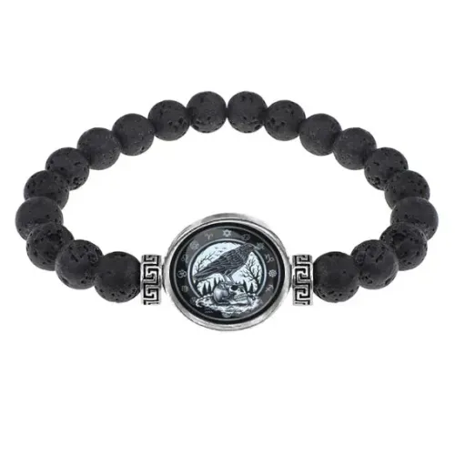 Браслет из лавы 8 мм Ворон на черепе BSL-0209