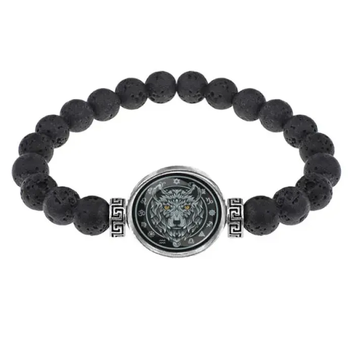 Браслет из лавы 8 мм Волк BSL-0215