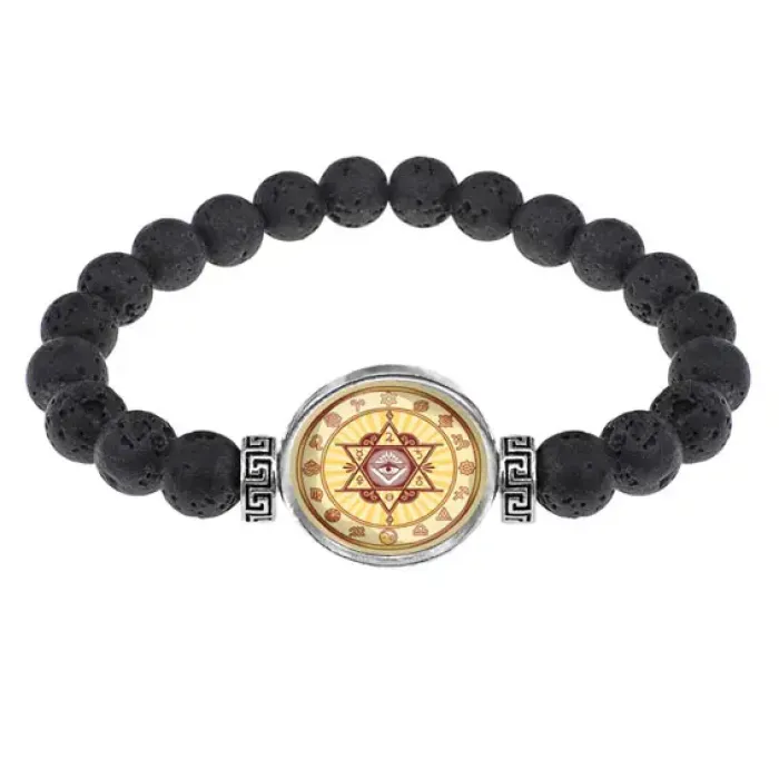 Стрейч-браслет из натуральной лавы диаметром 8 мм с изображением Звезды Давида под выпуклой стеклянной линзой.