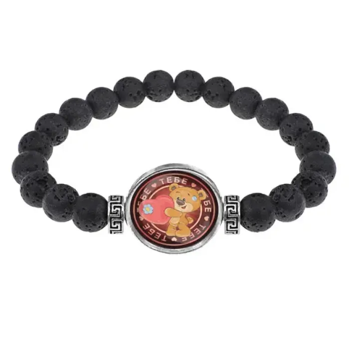 Стрейч-браслет из натуральной лавы диаметром 8 мм с изображением под выпуклой стеклянной линзой. Этот уникальный аксессуар не только украшает, но и символизирует силу, мужество и интуицию. Внутренний диаметр составляет около 5,5 см, а упаковка выполнена в виде прозрачного пакета.