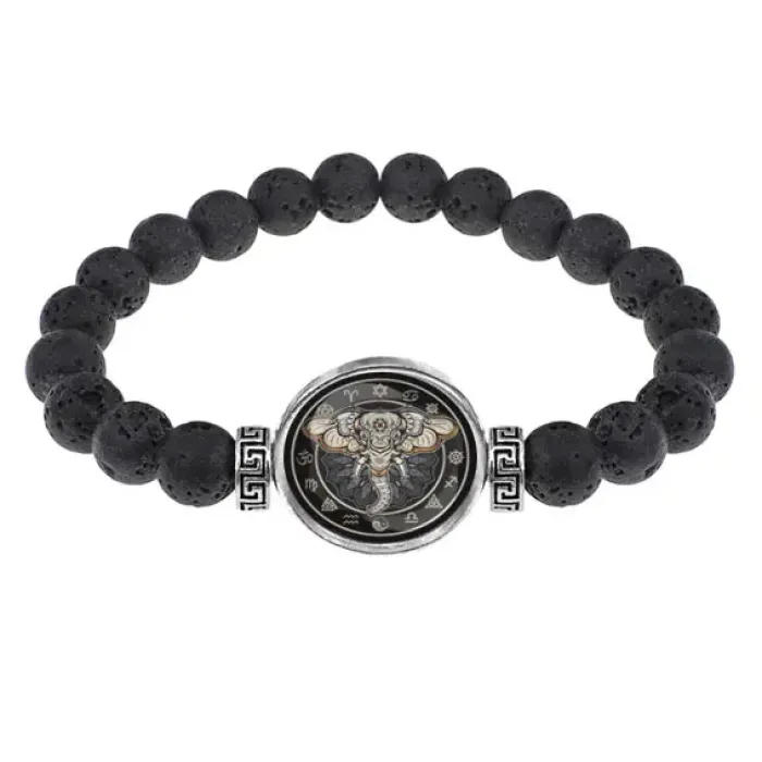 Стрейч-браслет из натуральной лавы диаметром 8 мм с декоративным элементом под стеклянной линзой.