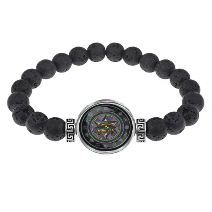 Стрейч-браслет из натуральной лавы диаметром 8 мм с изображением под выпуклой стеклянной линзой.